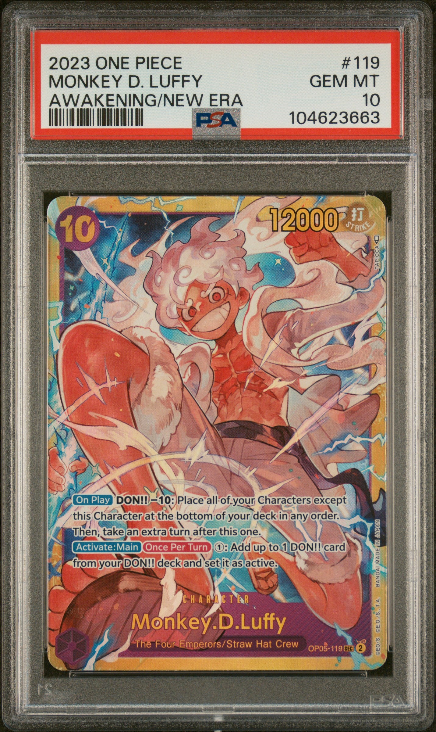 Monkey D. Luffy 119 SEC PSA 10 2023 One Piece OP05 Awakening New Era English